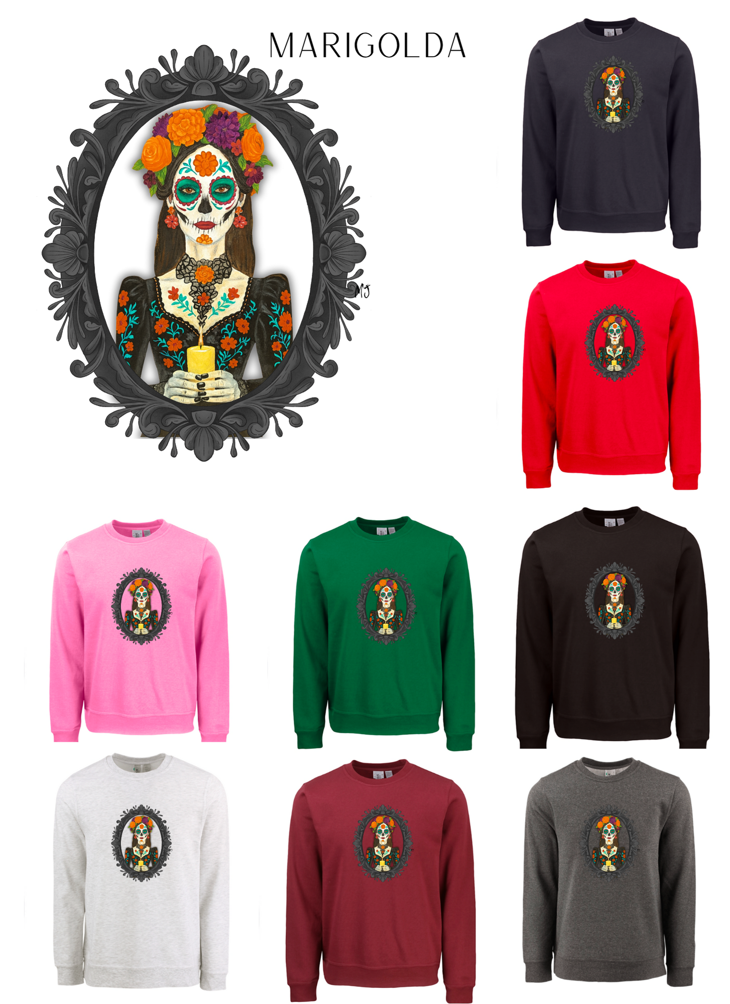 Crewneck MARIGOLDA, elle incarne le passage entre les mondes et la mémoire éternelle, elle nous rappelle que la mort n’est pas une fin mais une transformation.
