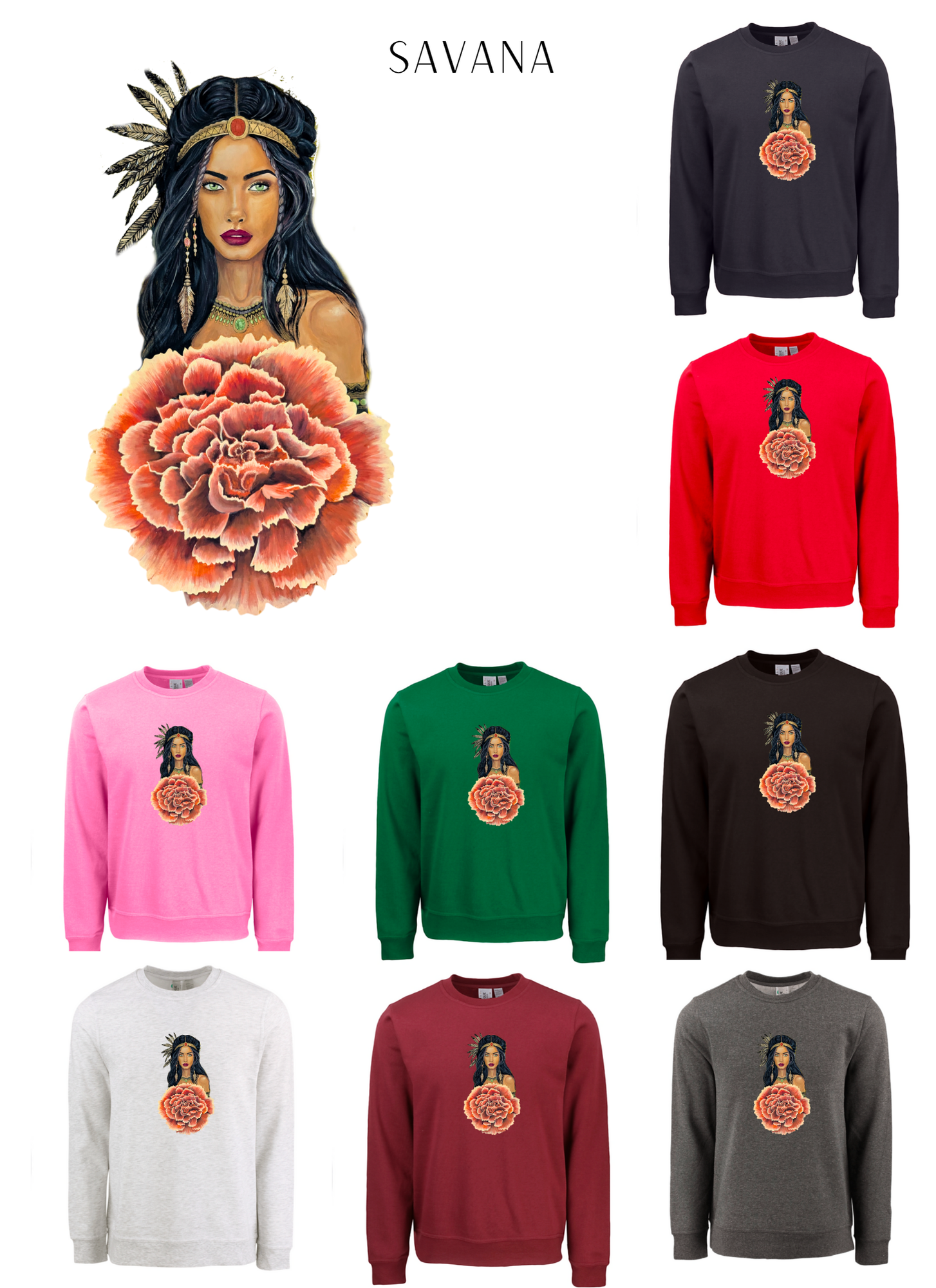 Crewneck SAVANA, l’âme Sagittaire, elle incarne la lumière, l’aventure et la force douce d’un esprit nomade.